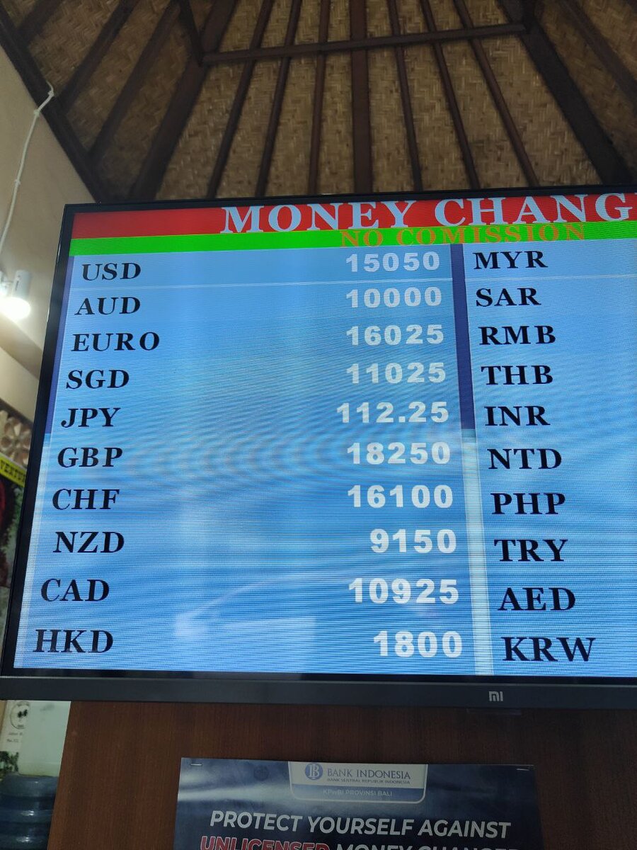 Самый актуальный вопрос для всех путешественников. Рассказываю как это было у нас. Мы прилетели ночью и вынуждены были менять по конскому курсу в аэропорту. Мы поменяли только на оплату жилья. Утром мы начали штудировать всевозможные чаты и отзывники. Пол утра бродили по Куте чтобы поменять деньги. Картина конечно интересная. Многие пишут про жульничество местных менял. И мы к сожалению тоже с этим сталкивались, но мы были подготовлены и мы просто уходили со своими деньгами. Рассказываю как это работает: На вывеске пишут шикарный курс. Переспрашивая они его тебе повторяют. Берут твои баксы и тут, внимание, представление начинается. Начинают вручную очень быстро считать и складывают деньги в 1 кучу. Когда ты начинаешь пересчитывать твои баксы уже отдадут чуваку который уходит и если ты недосчитываешься денег говорят что взяли комиссию и тоже уходят или делают вид, что не понимают что тебе нужно. Как вычислить такой обменник: У них обычно нет офиса и вывески. Просто стол в магаз