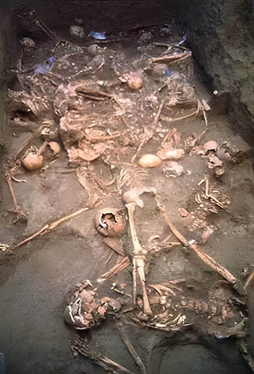Погребение датируется IV веком до н.э., периодом наивысшего могущества Македонского царства. Кроме впечатляющего количества останков, археологам сразу бросилась в глаза бедность погребения: на около сотни чело