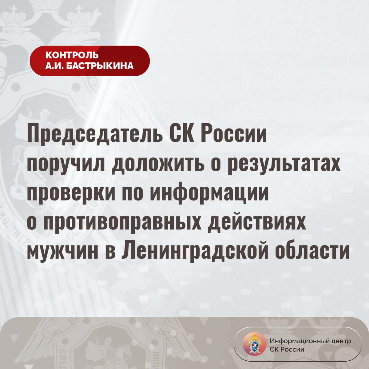 Председатель СК России поручил доложить о результатах проверки по информации о противоправных действиях мужчин в Ленинградской области