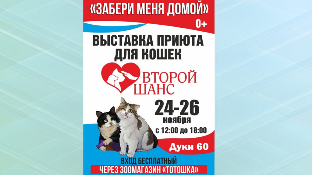 На Брянщине время от времени проводятся выставки для бездомных животных, где пушистики могут найти свой новый дом и любящих хозяев. В Брянске такое мероприятие проводит приют «Второй шанс». Выставка кошек с красивым названием «Забери меня домой» пройдет с 24 по 26 ноября в зоомагазине «Тотошка». Находится по адресу: улица Дуки, дом 60. Стоит отметить, все животные на выставке уже привиты и стерилизованы. Фотографии питомцев, живущих сегодня в приюте, можно посмотреть в группе в соцсети «ВКонтакте». Вход бесплатный. 0+ ФОТО: vk.com/Второй шанс В Брянске проведут выставку кошек «Забери меня домой» с 24 по 26 ноября