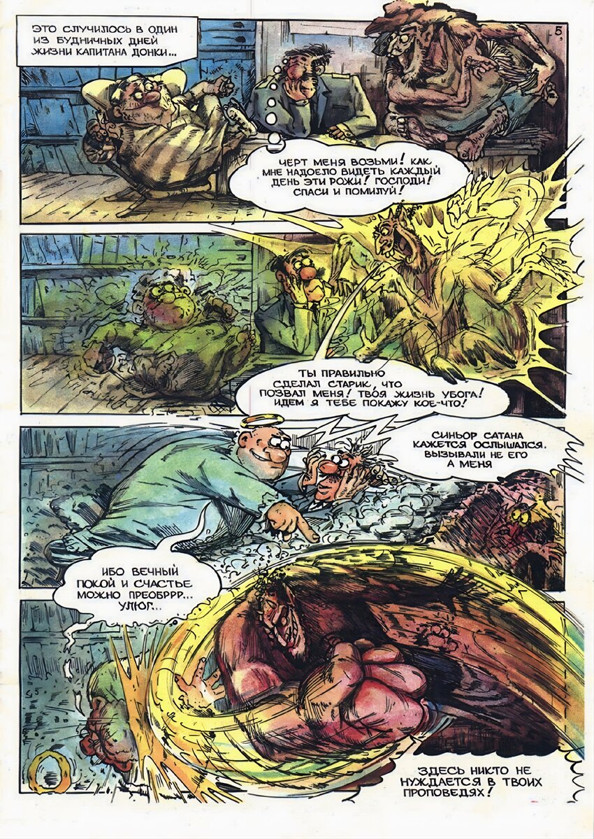 Заинтригованы? Тогда пару слов в напутствие – произведение (иначе и не скажешь) Владимира Сакова совсем не для детей. И дело даже не в откровенных сценах соблазнений в аду, а в том, что читатель младшего возраста пока не понимает разницы между «низом» и «верхом», не сможет увидеть отсылки в мифологию, религиозные догматы и не оценит всю тонкость юмора. А без него смотреть «Приключения Капитана Донки» все равно, что наблюдать за спящим котом – миленько, но «уже было».