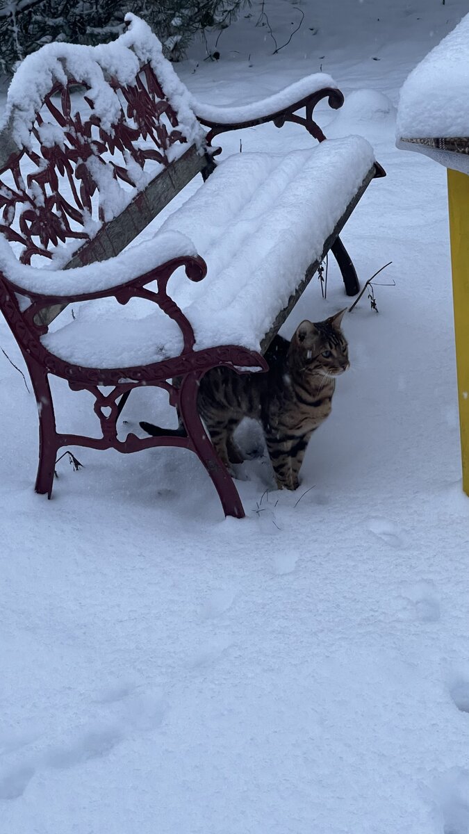 Лео - бенгал, моя любовь и постоянный источник ревности дочки «ты его больше меня любишь». С этим я бы поспорила, а вот с тем, что он красив - до замирания в сердце - не поспоришь, это факт.❤️ Сегодня удалось его успеть на прогулке в волшебный снегопад... Полюбуемся? Итак, сегодня выпал волшебной красоты воздушный снег... и потеплело. Всего -3, а вчера было -15 ❄️. Поэтому я радостно выбежала на крыльцо - пофотографировать любимца, пока он рядом и «вообще успеть его «поймать в кадр». Как я уже писала ранее, Лео - бенгал, а это «очень Дикий нрав и свободолюбивый дух». Поймать его в кадр - редкая удача. Или он где-то исследует мир, или спрятался «так что не найдёшь»: что в доме, что на участке. И на руки он не идёт... а всё равно его обожаю. Ласку любит. Просто «на его правилах». Гладить можно, ласковые слова - обожает и млеет, щурится, может сам прийти и улечься «под боком». А вот на руки - ни ни. Лео - больше похож на дракона, чем на кошку. Такая порода. Просто другой костяк: другое