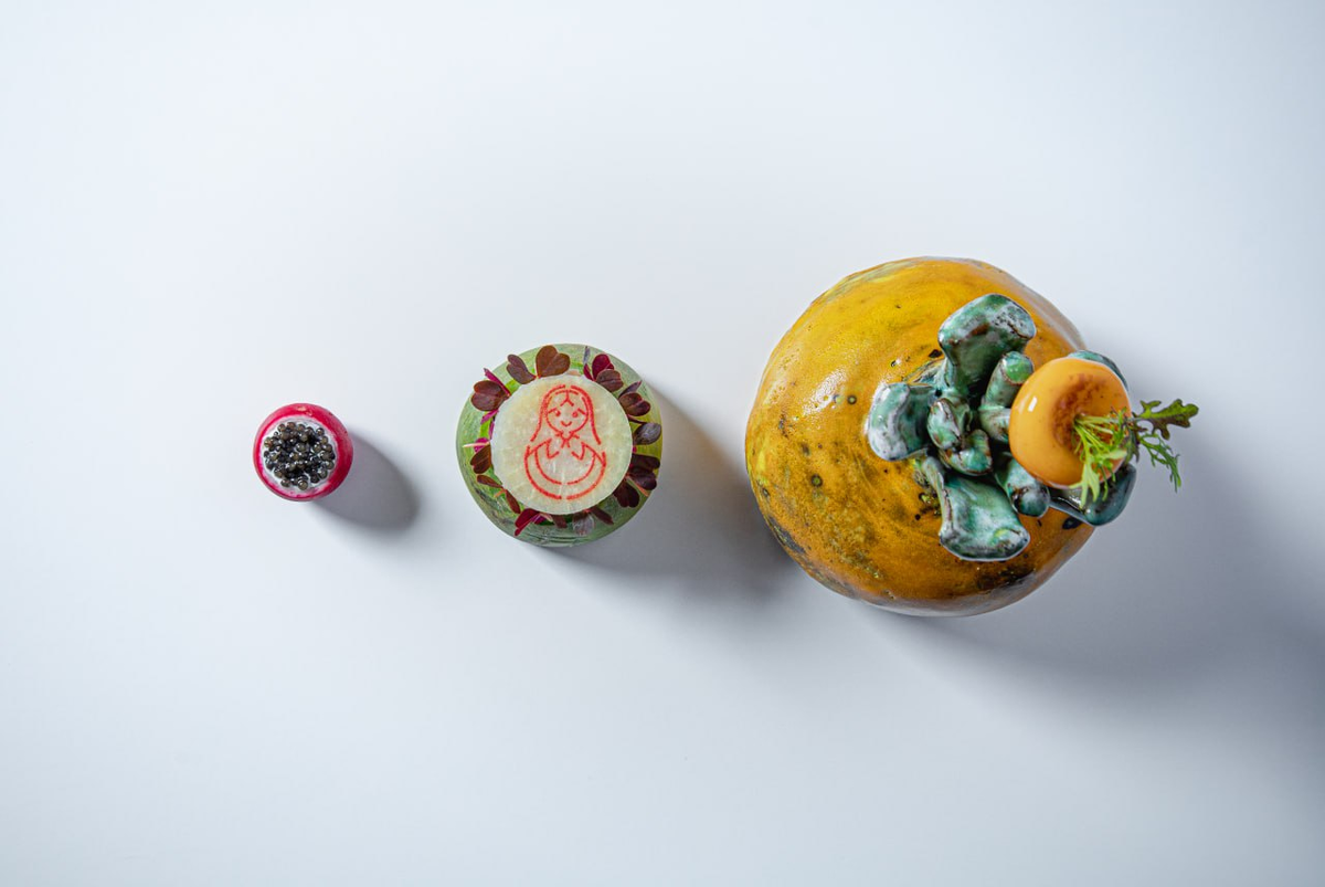 Любой, кто серьезно интересуется едой, скажет вам, что одним из важнейших столичных событий этой осени стало появление нового дегустационного сета «Сделано в России: Путешествие по Золотому кольцу» в ресторане Twins Garden. Ажиотаж во многом объясняется тем, что проект, отмеченный двумя звёздами Michelin, не так давно остался без звездных шеф-поваров братьев Березуцких, создавших ему славу. Новый сет, состоящий из восьми курсов с винным сопровождением, представила обновленная команда ресторана. Каждое блюдо посвящено определенному городу Золотого кольца и служит мини-экскурсом в кулинарную историю и гастрономические традиции местности. Создавался сет с использованием региональных продуктов. «Еда без границ» рассказывает о вкусах Золотого кольца подробнее. 📌Подписывайтесь на наш канал, чтобы не пропустить последние новости о еде и сохранить все рецепты в одном месте Вдохновением для первого блюда послужила матрешка, появившаяся в конце XIX века в Сергиевом Посаде. Три главных ингредиен