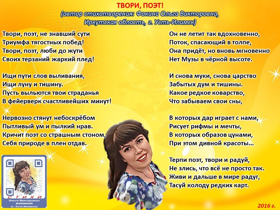 Твори, поэт! (стихи Ольги Фокиной, Усть-Илимск)