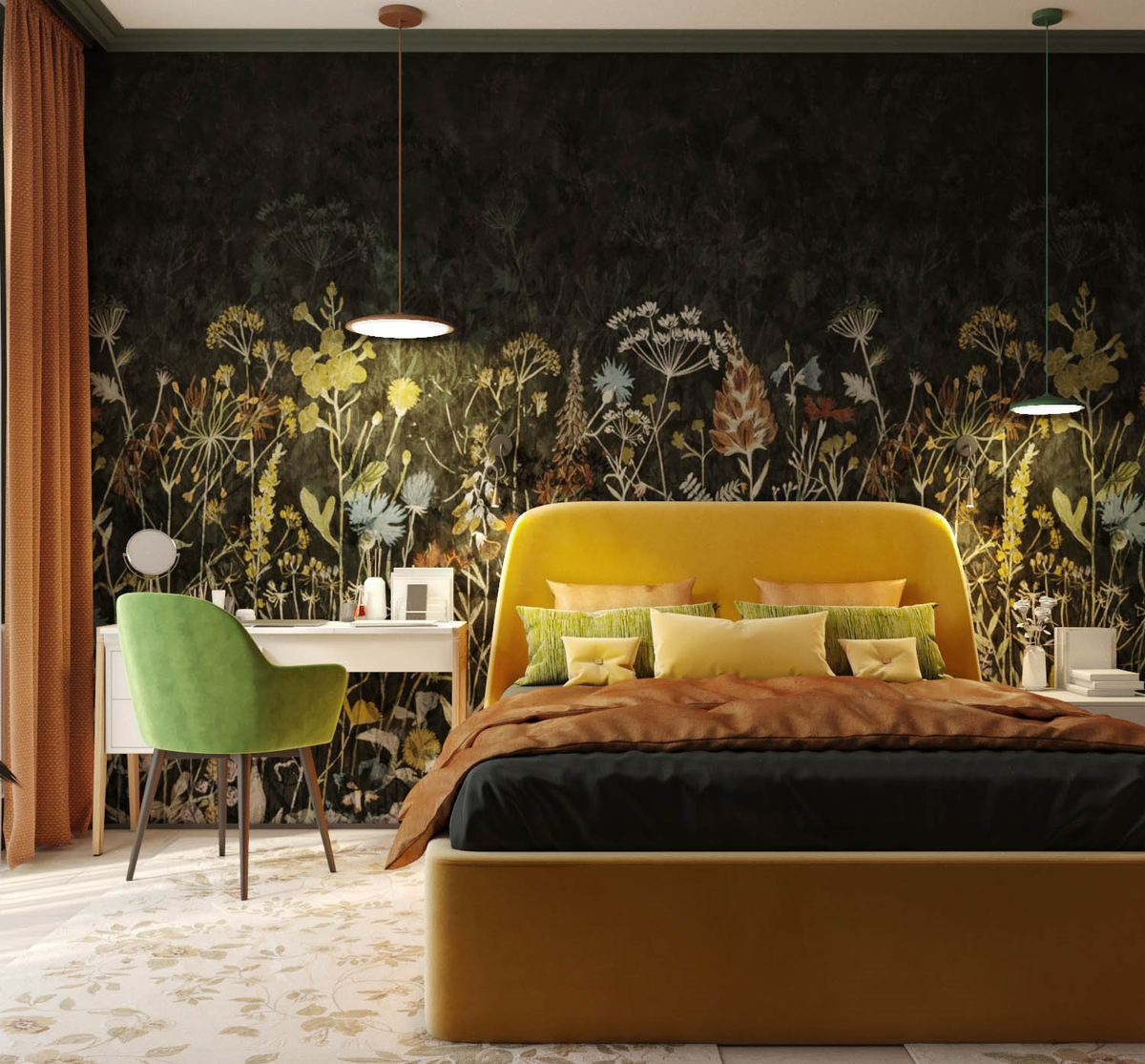 Данный цвет может придать помещению дополнительной объемности, которая способна оживить даже самые маленькие спальни.