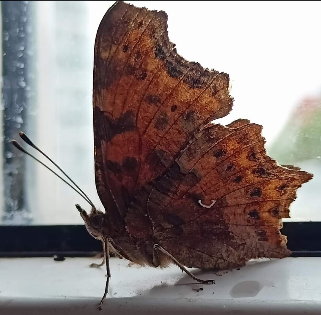 Бабочку эту зовут Углокрыльница C-белое. На латыни Polygonia C-album.