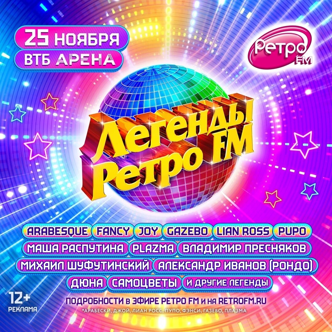 Фестиваль «Легенды Ретро FM» в Москве 25 ноября на сцене «ВТБ Арена»