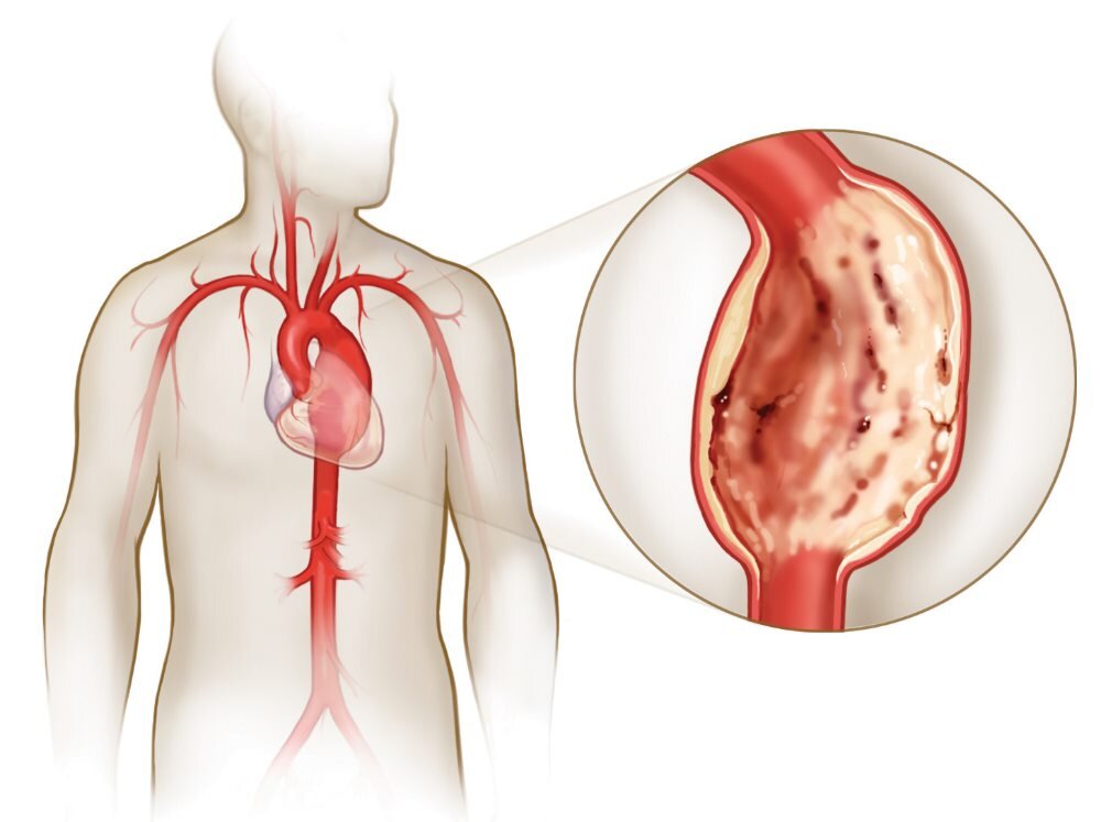 Аневризма — это аномальное расширение артерий, которое возникает из-за ослабления артериальной стенки (расширение сосуда на 50% и более от нормальных его размеров), такое увеличение сосуда, в свою очередь, приводит к истончению артериальной стенки, которое чревато серьезными осложнениями с частым летальным исходом