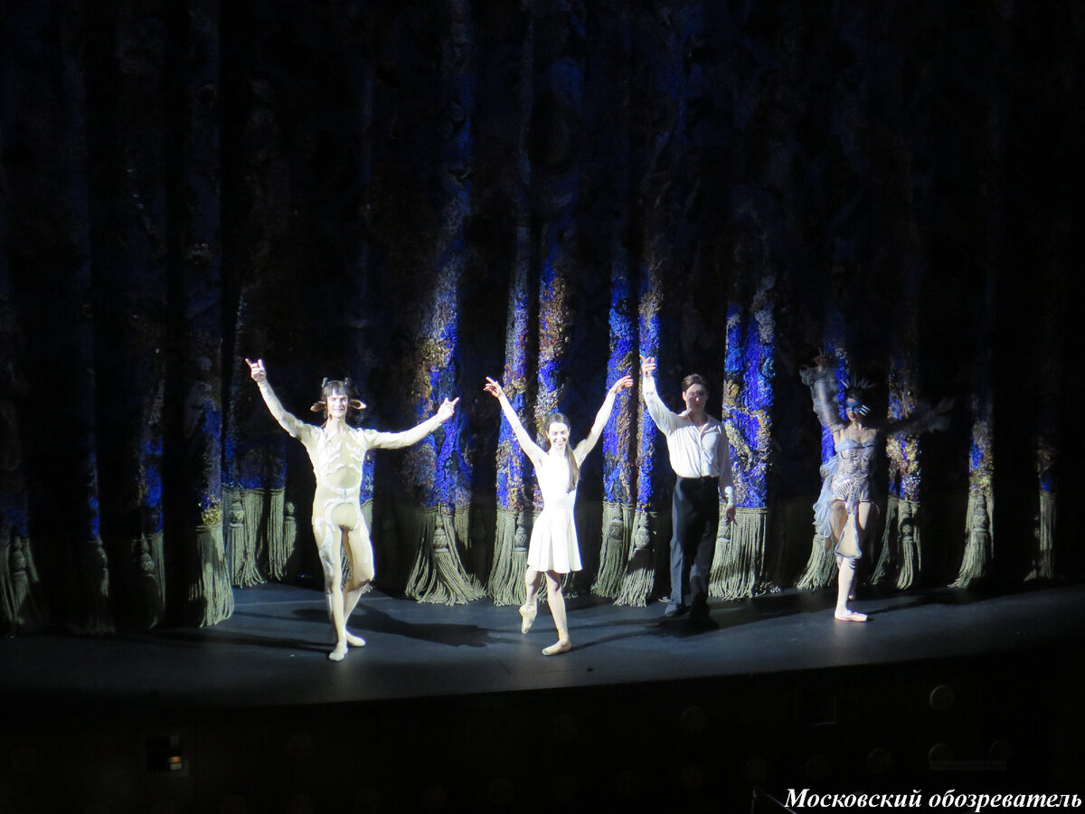 И снова о хореографе. Вы видите на поклонах у задника сцены зеленое сооружение, там написано «Снежная королева», сегодняшнее число, композитор — это Чайковский, между прочим, не указан, а фамилия постановщика есть! В наше время сказали бы: «Скромнее надо быть молодежи»!