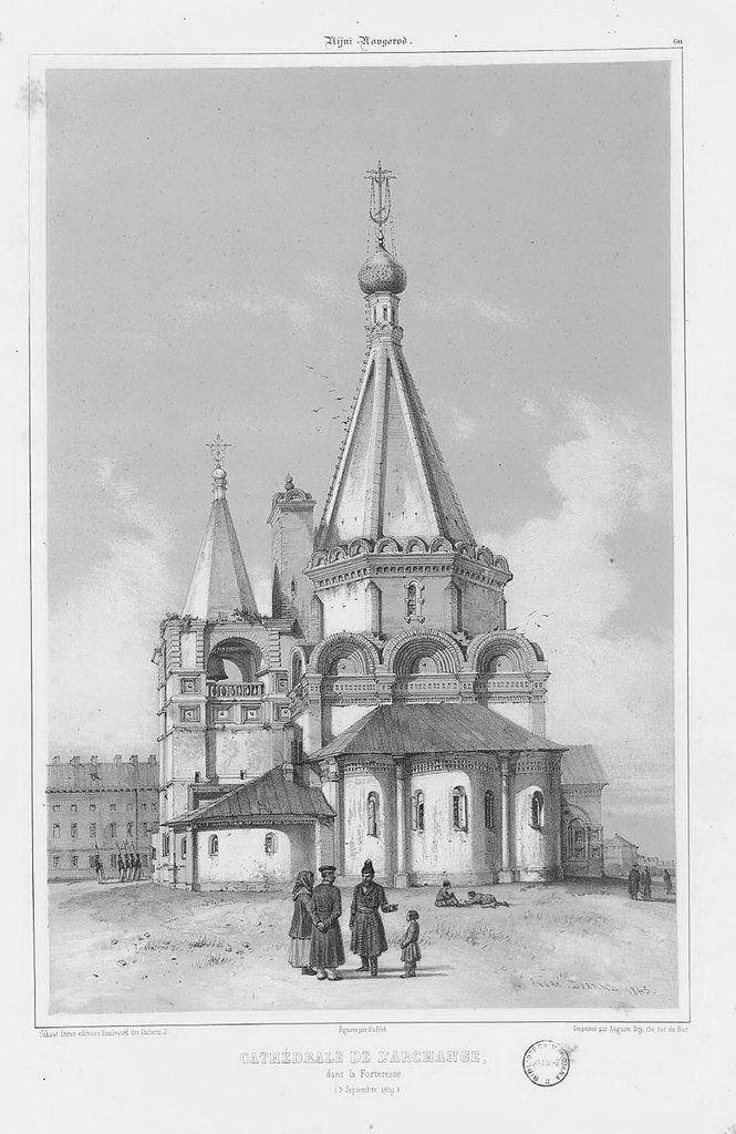 Первый деревянный храм в честь Архангела Михаила в Нижнем Новгороде был построен в 1221 году. Однако уже 1227 году собор был возведен в камне. По крайней мере, мы читаем об этом в Нижегородском летописце, дескать князь Юрий (сын Всеволода Большое Гнездо Георгий) «в Нове Граде Нижнем заложил церковь каменную архистратига Михаила».