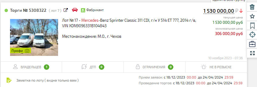 Лот № 17 - Mercedes-Benz Sprinter Classic 311 CDI.