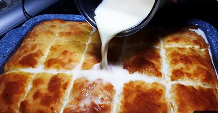 Очень простой и вкусный пирог с начинкой получается когда заливают пирог молоком при выпечке ещё в духовке за 10 минут до готовности.