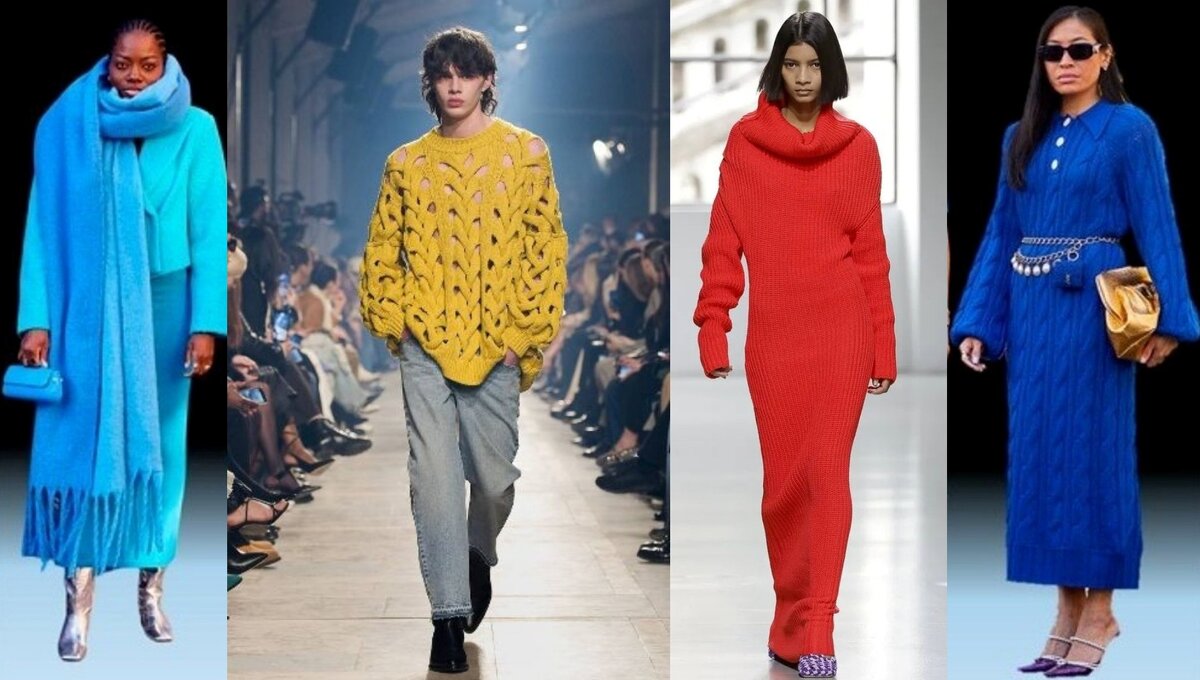 Изучив показы знаменитых модельеров и модных домов, я уверенно могу заявить, что сам по себе трикотаж — это тренд. Вязаные изделия и аксессуары присутствуют во многих коллекциях различных брендов, таких как Max Mara, Chanel, Etro и, конечно же, Hermes, Brunello Cucinelli. Из сезона в сезон меняются фактуры, материалы, узоры, техники, модели изделий, но сам по себе трикотаж остается. Основные тенденции Можно выделить несколько основных тенденций в трикотаже сезона осень-зима 2023/24 Монохромные аутфиты Монохромный аутфит — это образ, в котором изделия и аксессуары подобраны в одном цвете и разных вариантах его оттенков. Целую коллекцию монохромных образов представили бренды Hermes и Staud, где даже аксессуары подобраны в тон аутфита.