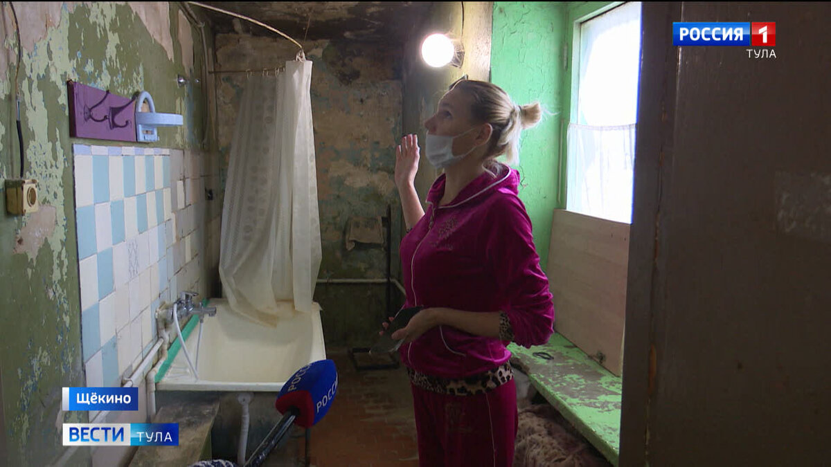 Прибегает девушка и собирает с мужем воду. С крыши течет на 4 этаж. Самый страшный прогноз погоды для жителей этого щёкинского общежития – дожди или оттепель. Ведь все осадки проливают здание 1971 года постройки, минимум, до третьего этажа. Вёдра и детские ванночки на верхнем пятом уже не убирают больше трёх лет. Олеся Петросян, жительница общежития: Тут не капает, а льет, это ужасно, мы не можем мыть детей, у нас полный этаж детей – 10-месячные, трёхлетние, здесь очень холодно, и что не ставь, ничего не помогает. Грибы, плесень, отваливающиеся части потолка не только в комнатах общего пользования. Устав самостоятельно бороться с изжившей себя крышей и в отчаянии, жители одной из комнат вынуждены были съехать. Кому деваться некуда и нет средств, выживают, как могут. Олеся Петросян, жительница общежития: Сколько писали, доходили до прокуратуры несколько лет назад, всё в бестолку, всё рушится. Управляющая компания ЩУК, заявлений там очень много. О том, в каком состоянии здание, можно суд
