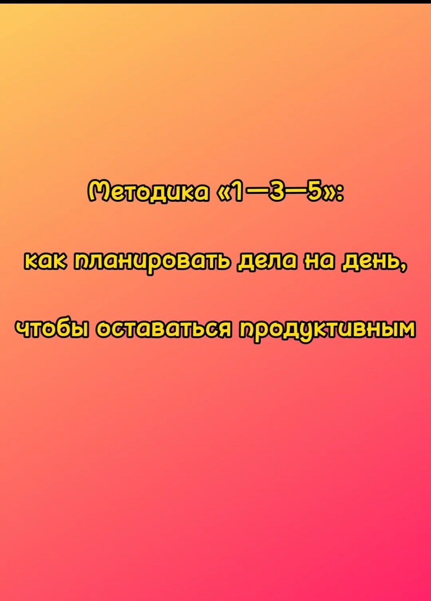 Чтобы такого не случалось, адаптируйте метод под себя. К примеру, в один день стройте планы по принципу «1—3—5», а в другой — «1—2—3»: как позволит сложность работы.