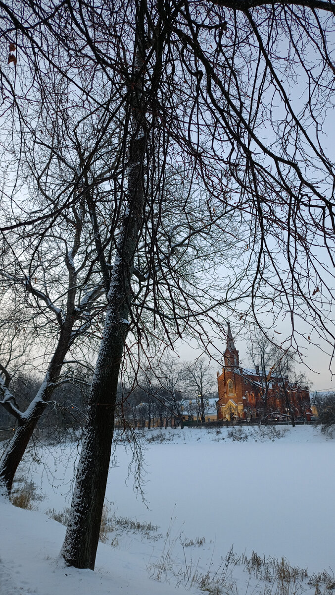 А там действительно настоящая зима - белым бело. И морозец был -12. Сестричка там живëт у меня. Вот и погуляли с ней славненько! Хорошо, что она водит машину и мы смогли посмотреть несколько мест, которые наметили. Я не один раз писала о поездках туда и зимой и летом. Но красоте Пушкина не перестаю удивляться. Мы хотели посмотреть старый ж/д вокзал, но не получилось. Вокзал начали реставрировать и он закрыт полностью. Мы не стали выходить из машины, когда это увидели. А ещë недавно, как говорит Галя, этого не было. Не успела увидеть я то, что хотела! Надеюсь не испортят реставрацией! От вокзала поехали к Феодоровскому собору. Тут нам повезло. Даже попали в Пещерный Храм, что находится в соборе внизу. Он не всегда открыт бывает. Про этот Государев собор я напишу статью отдельную. Уж больно он хорош и снаружи и внутри. А от Собора прошли мы рядом к зданиям, что принадлежали раньше Государственному аграрному университету. Сейчас они нежилые. Надеюсь эту красоту тоже отре