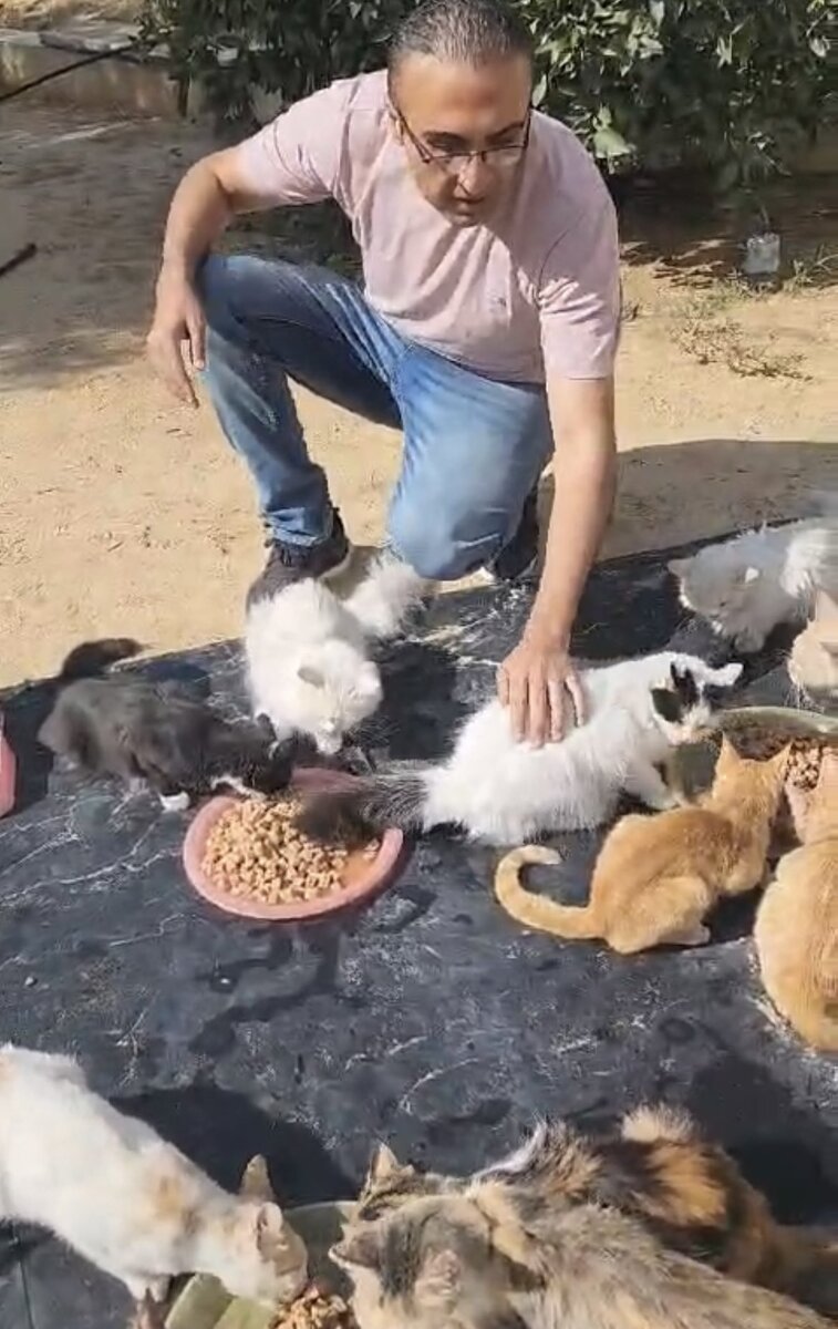 Он починил у себя дома поврежденную крышу. Там проблема с черепицей была, прохудилась. Котики целы на данный момент. Но что будет дальше, он не знает, ибо пряникометания были довольно близко к его дому. А оно начнется сегодня. Ибо перемирие кончилось. Вот, что он пишет. Я пошел в больницу Аль-Шифа, где работаю.. Вы не представляете масштаб катастрофы, которую я увидел в больнице. Это более, чем страшно. Мне удалось поменять песок в приюте на кошачий наполнитель. Мне удалось опрыскать приют и сад пестицидами, потому что во время войны насекомые ужасно распространились. К сожалению, мне не удалось раздобыть больше еды для кошек. Я также не смог получить дополнительные припасы для себя и своей семьи. Я не мог купить бензин, чтобы запустить насос для скважины.. Большая часть основной продукции распродана. К сожалению, Газа находится на грани голода. У меня достаточно средств, чтобы прокормить семью и котов до начала нового года. Поступившая гуманитарная помощь едва покрывает 10% потребно