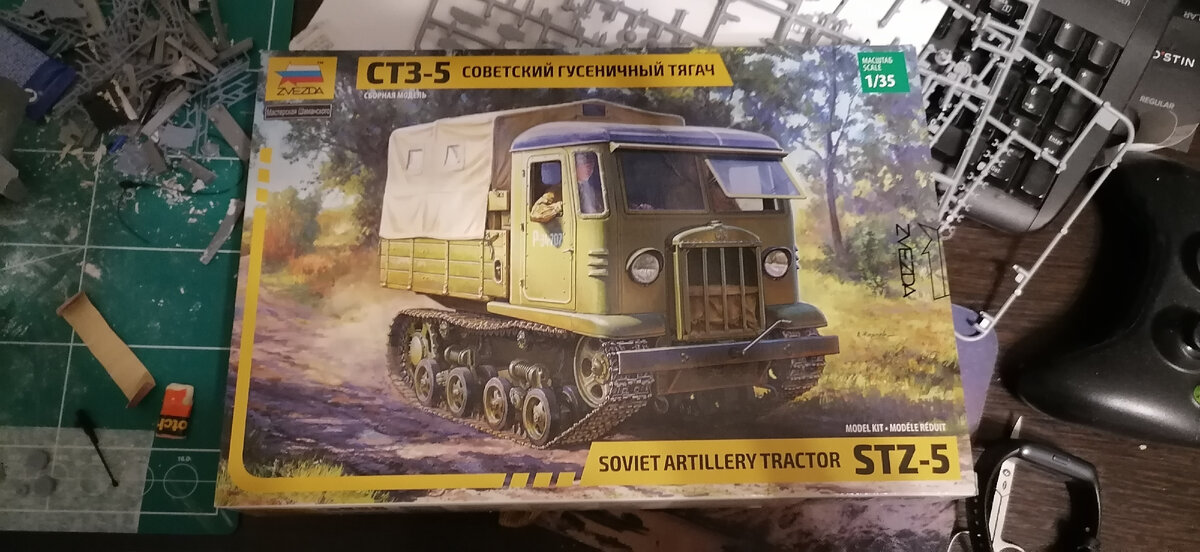 Всех приветствую! Сегодня немного отвлечемся от вертолета:) По случаю прикупил себе то что давно хотел. Это СТЗ-5 от Звезды. Вот такой маленький но интересный на мой взгляд тягач. Скажу сразу- военным он точно не будет... А каким будет - придумаем! А пока сажусь снова за вертолет....