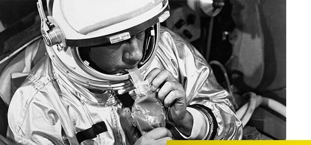 20 февраля 1962 года на борту корабля Friendship 7 . астронавт Джон Гленн съел яблочное пюре из тюбика. До этого момента точно не было известно, сможет ли человек в космосе что-либо проглотить. Джон Гленн доказал, что это возможно.