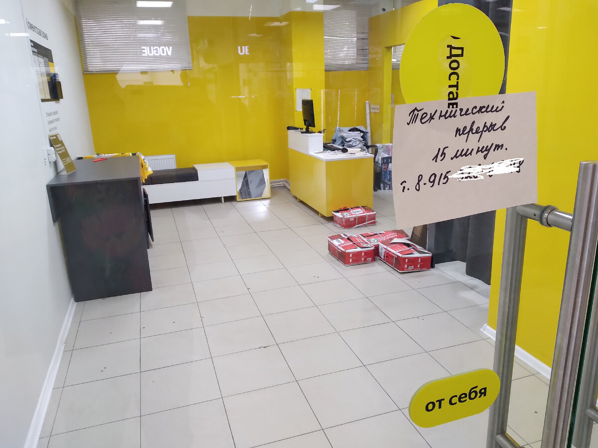 Давно с таким «совком» не сталкивался. Несколькими днями ранее сделали заказ в Яндекс.Маркете. Когда наш товар наконец-то был доставлен в пункт выдачи заказов Яндекс.Маркета мы пошли его получать. В этом же здании забрали свой заказ из постамата Озона, это удобно. К сожалению, товары, купленные в Яндекс.Маркете, можно было получить только через пункт выдачи заказов, потому что в данном торговом центре убрали постаматы Яндекс.Маркета, а вместо него установили постамат Халвы. Подойдя к пункту выдачи Яндекса увидели, что там идут разгрузочные работы. На полу лежало множество картонных коробок. Было понятно, что это надолго, однако нам нужно было получить свой товар. Но сотрудница не выдала нам наш заказ (хотя сперва вроде даже была не против, но ее остановил мужчина-курьер), сославшись на то, что она занята приемкой и предложила подождать в этой же комнате, но там стояла пылища, поэтому пришлось выйти. Тем временем мы зашли на этом же этаже в другой магазин, потом ещё в другой и вернулись