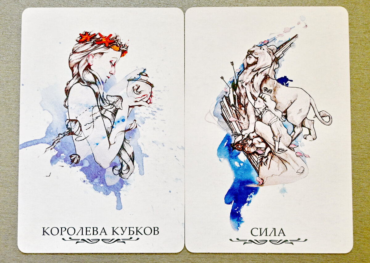 Только движение это будет не через слом и нагрузки - через глубинное понимание мира и через взаимную любовь со всей Вселенной. Королева кубков показывает потоки любви, нежности, чувственности, удовлетворенности. А Сила- это крупные результаты, возможность принять в свою жизнь значимые результаты, превосходящие ожидания.