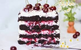 Торт Чёрный лес зародился в Германии , он приобрёл мировую популярность , за счёт стандартного сочетания шоколад -сливки -вишня .