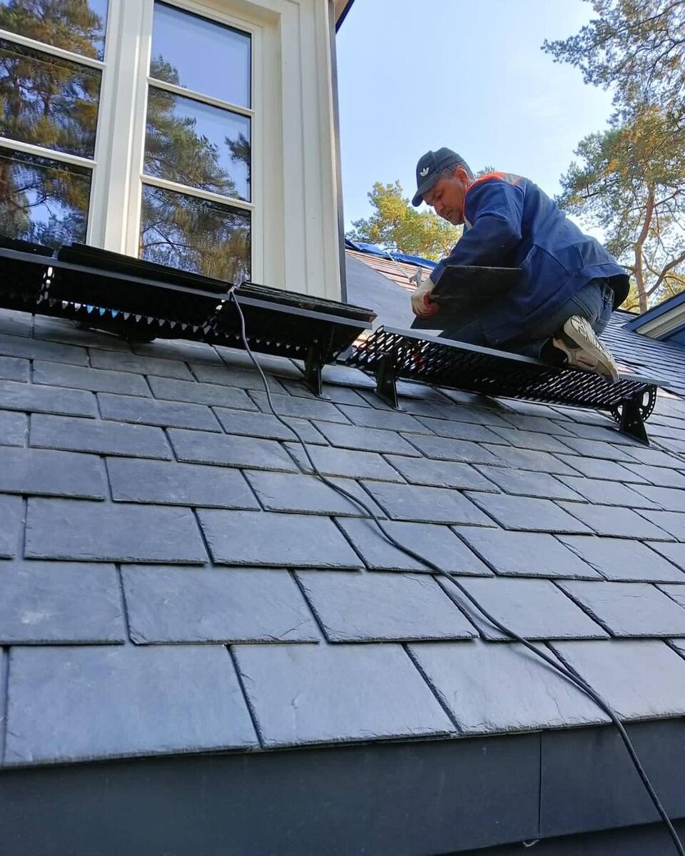 Монтаж сланцевой кровли - это сложный и деликатный процесс, требующий опыта и знаний. Техника монтажа зависит от конструкции крыши, вида кладки и размера сланцевой черепицы. Именно умение и опыт кровельщиков влияют на итоговый вариант кровли из сланца. Только профессионализм и качественный монтаж позволят получить крышу, радующую своей долговечностью и красотой. В данном вопросе никогда не стоит полагаться на удачу, так что лучше заранее позаботится о подборе команды для выполнения подобных работ. НУЖЕН ЛИ РЕМОНТ КРЫШИ ИЗ СЛАНЦА? Конечно, как и любой другой кровле, сланцу может потребоваться ремонт, но в случае с данным материалом беспокоиться не стоит. Наши специалисты могут провести ремонт с максимальной аккуратностью не только благодаря тому, что сланец в качестве кровельного материала имеет множество уникальных свойств, но и благодаря большому и бесценному опыту! Мы можем предложить вам полтора десятка различных вариантов укладки сланца, начиная от классической двойной прямоугольно