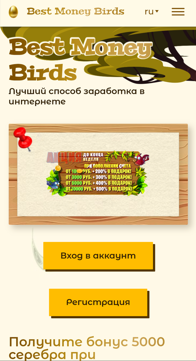 Игра которая реально выводит деньги! Я тоже думал что это лохотрон как многие думают,но нет! Я решил попробовать, завёл аккаунт,получил 5000 серебра,купил птиц и через пару дней уже вывел 10.000₽ на банковскую карту Торопись,ведь скоро закончится бюджет данного проекта! Ссылка для перехода: https://tap-to-play.me/z4BDv
