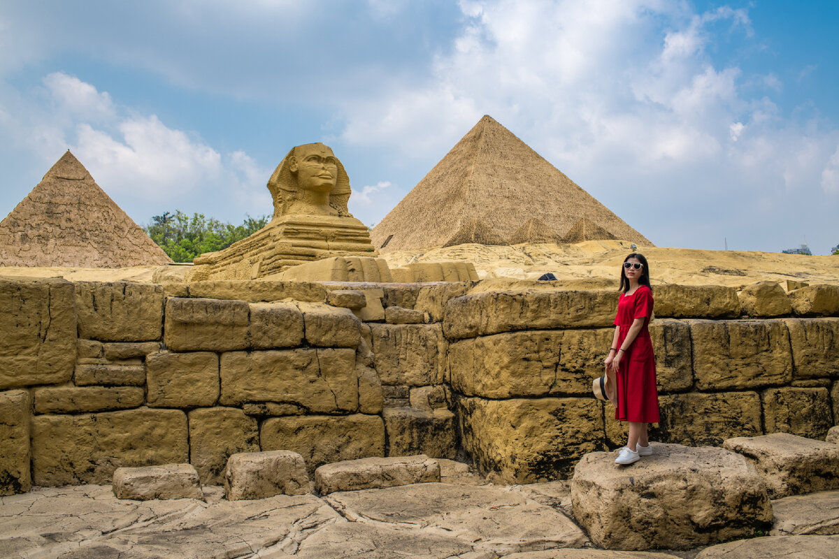 Большой сфинкс Гизы возвышается над незаконченным тематическим парком в Чучжоу. В отличие от оригинала, у китайской версии скульптуры нос есть. А вот сфинкс в северной провинции Хэбэй, созданный в 2016 году, носа не имеет.