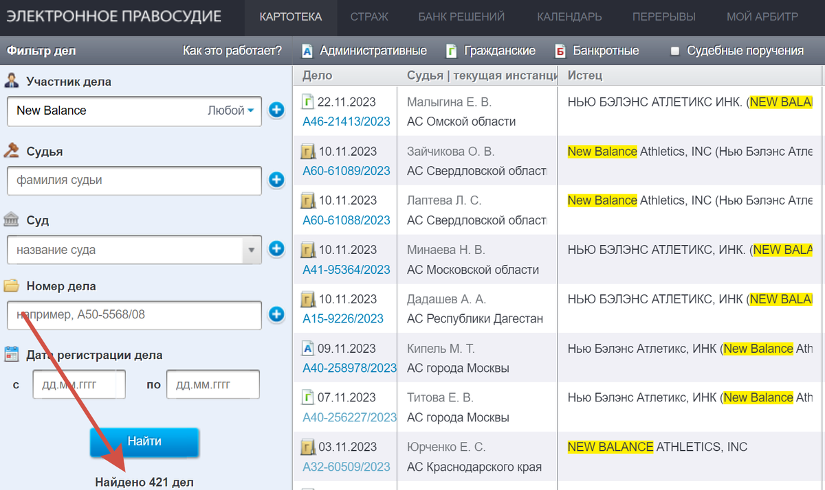 Все чаще к нам обращаются из-за исков и претензий New Balance. Изучив картотеку арбитражных дел, мы обнаружили, что New Balance подано множество исков Получили претензию или иск. Что делать? 1. Запросить доказательства нарушения и наличия права требовать компенсацию. Это могут быть: 2. Оценить доказательства и сформировать позицию. Возможные варианты зависят от обстоятельств дела. Например: - от доказанности нарушения и его характера; - от добросовестности истца; - от степени вины ответчика и т.д. 3. Если получена только претензия - провести досудебное урегулирование спора. Со ссылками на действующее законодательство и судебную практику доказать, что отсутствует нарушение или компенсация должна быть намного меньше. 4. Если иск уже подан - сделать отзыв на исковое заявление и представить в суд доказательства. 5. ЧТО, ЕСЛИ НИЧЕГО НЕ ДЕЛАТЬ? - суд взыщет по полной. ВАЖНО! Мы защищаем интересы предпринимателей в таких спорах, и можем подсказать возможные варианты решения. Вы можете зада