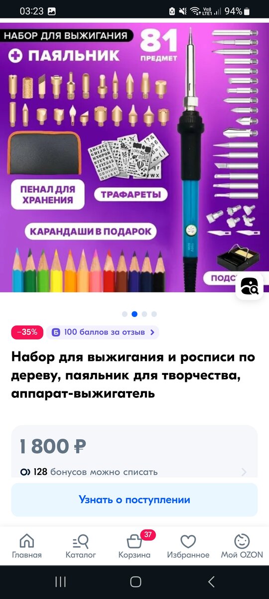 Творчество настолько разнообразно и в наше время доступно каждому, почему бы не использовать эти возможности?💫 Ведь творить своими руками, воплощать идеи в жизнь - истинная радость! Первый предмет для творчества, который подлежит моему обзору, - это аппарат-выжигатель, а точнее "Набор для выжигания и росписи по дереву, паяльник для творчества, аппарат-выжигатель". Заказала я его на Озон летом 2023 с целью пробы, понравится ли заниматься пирографией или нет (спойлер - понравится😁). * Сейчас конкретно этот закончился, оставлю ссылку на предложенный Озоном "похожий". Нашла примерно среднего класса в ценовой категории выжигатель. К нему прилагался большой набор, а сам он представился универсальным. Решила, что надо брать - пусть будет! 💼 Выжигатель пришел в действительно удобном и хорошем пенале. Он жесткий, с петлей (можно куда-нибудь повесить), и удобными внутренними кармашками / держателями. Красивое сочетание оранжевого и черного, приятный на ощупь, как кожаный. За пенал 10 / 10.