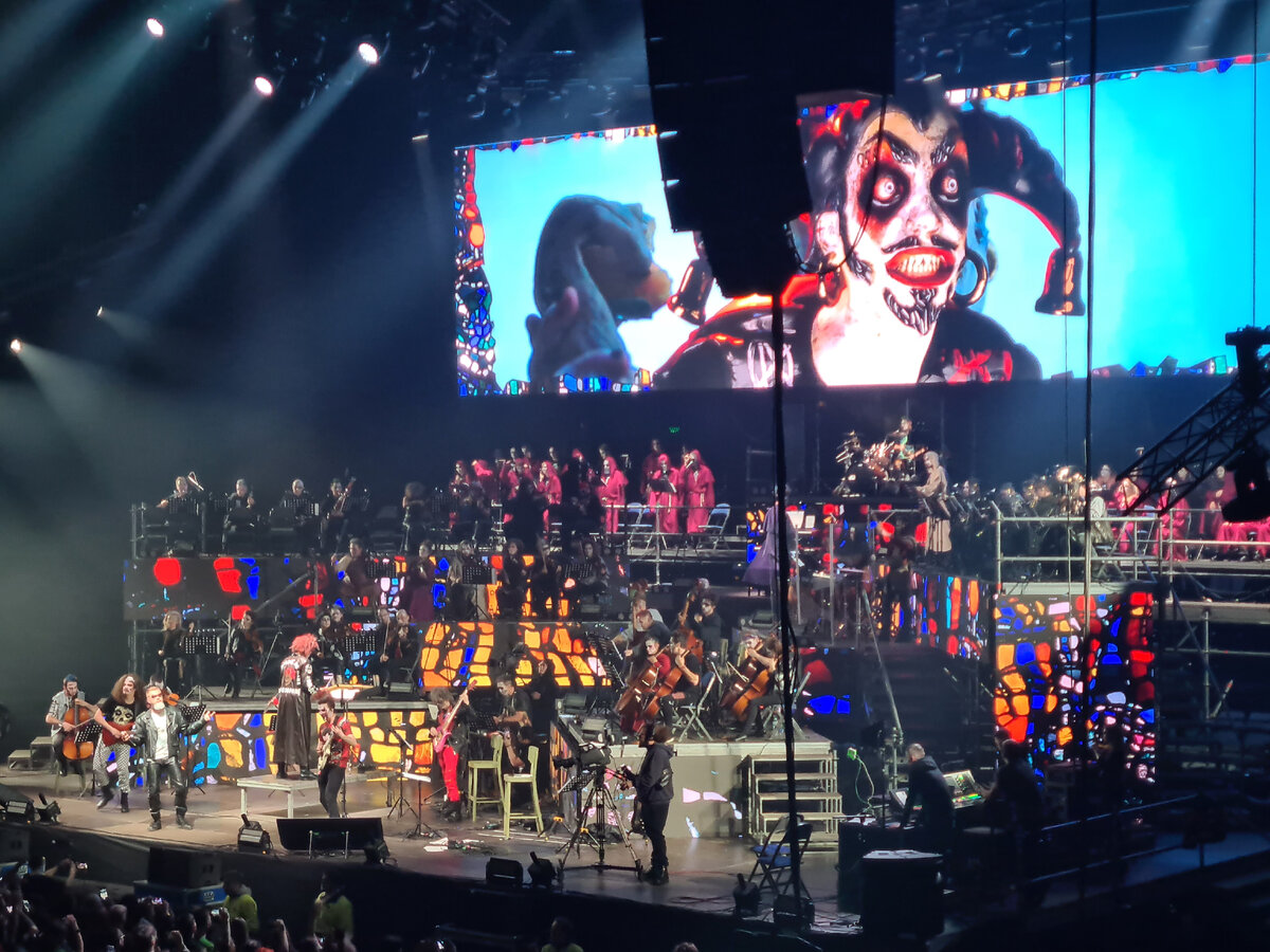 Панк-сказку "Король и Шут" - очень ее ждала. В целом это - музыкально-мультимедийное шоу, в котором симфонический оркестр Imperial Orchestra, электро-гитары (и барабаны, и синтезатор - в общем, стандартный состав рок-группы) плюс орган и хор исполняли хиты КиШа, а на экране показывали кадры из клипов группы или отрывки из фильма "Король и шут". Шоу красивое, 12 тысяч человек пели в унисон! Вся арена буквально сотрясалась от энергии! Выступление сопровождалось эффектным световым шоу и вставками из сериала, что, по задумке автора, должно способствовать более глубокому погружению зрителя в атмосферу песен «КиШа». 🤟🤟🤟 При этом основной акцент сделан именно на сказочности повествования, для большего эффекта был проработан образ каждого из музыкантов на сцене — в частности, индивидуальный грим. В общем наорались😊 (ну невозможно не подпевать-молодость же наша) и напрыгались от души, НО за такие деньги🙈🙄, в разы дешевле все тоже самое можно было осуществить в караоке. А те