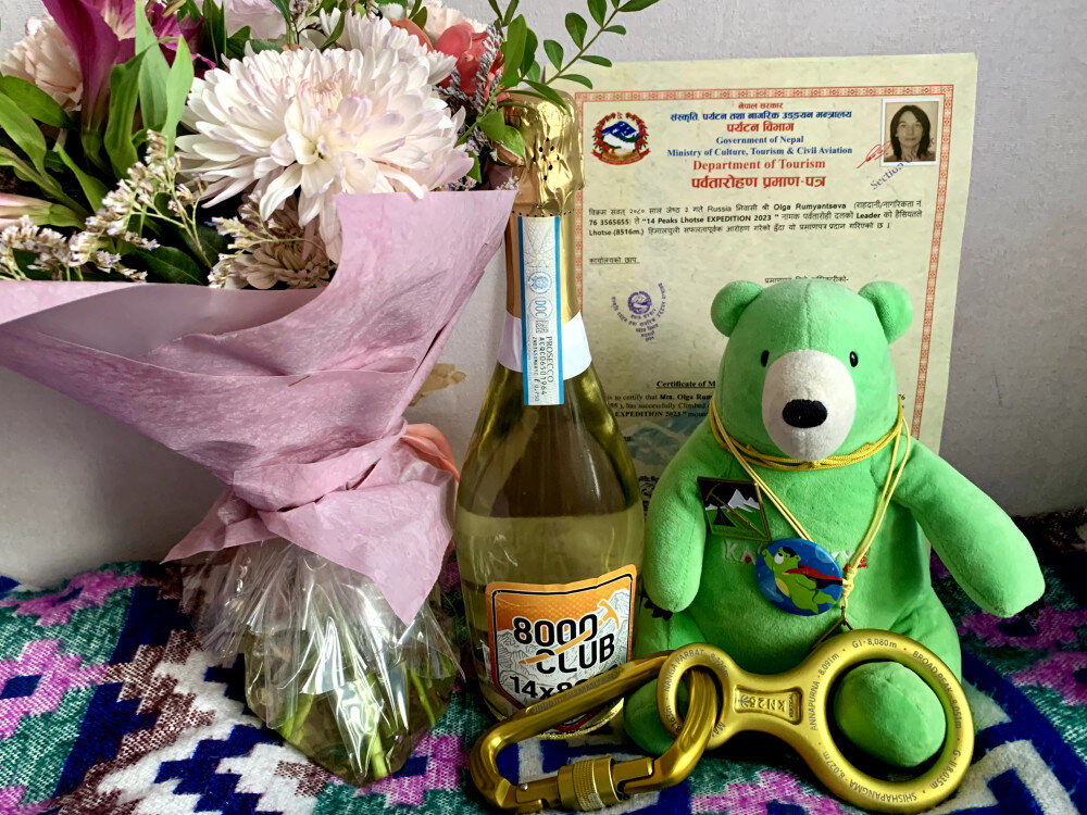 Новинка этого года - всем взошедшим на горы выше 8000 метров вручали золотой карабин и золотую восьмёрку.
