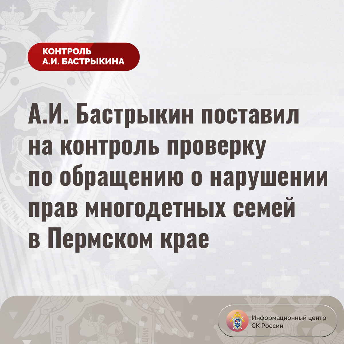 А.И. Бастрыкин поставил на контроль проверку по обращению о нарушении прав многодетных семей в Пермском крае