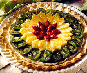 Мягкий сливочный сыр ПРИГОТОВЛЕНИЕ 1.Для приготовления коржа в миске среднего размера соединить муку и соль. Нарезайте шортенинг, пока его кусочки не станут размером с горошину. На часть мучной смеси вылить 1 столовую ложку воды и аккуратно перемешать вилкой. Отодвинуть в сторону. Повторить, добавляя оставшуюся воду. Сформировать тесто в шар. На слегка посыпанной мукой поверхности расплющить тесто руками. Раскатать от центра к краям, сформировав круг диаметром около 40 см. 2. Подровняйте тесто, чтобы оно