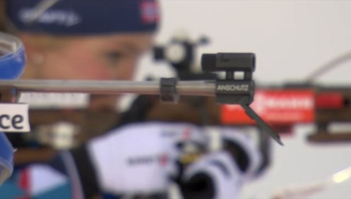 Одновременно стреляют 🇳🇴 Тандревольд и 🇸🇮 Лампич. Первая - точно, вторая - два промаха на своей первой стрельбе.