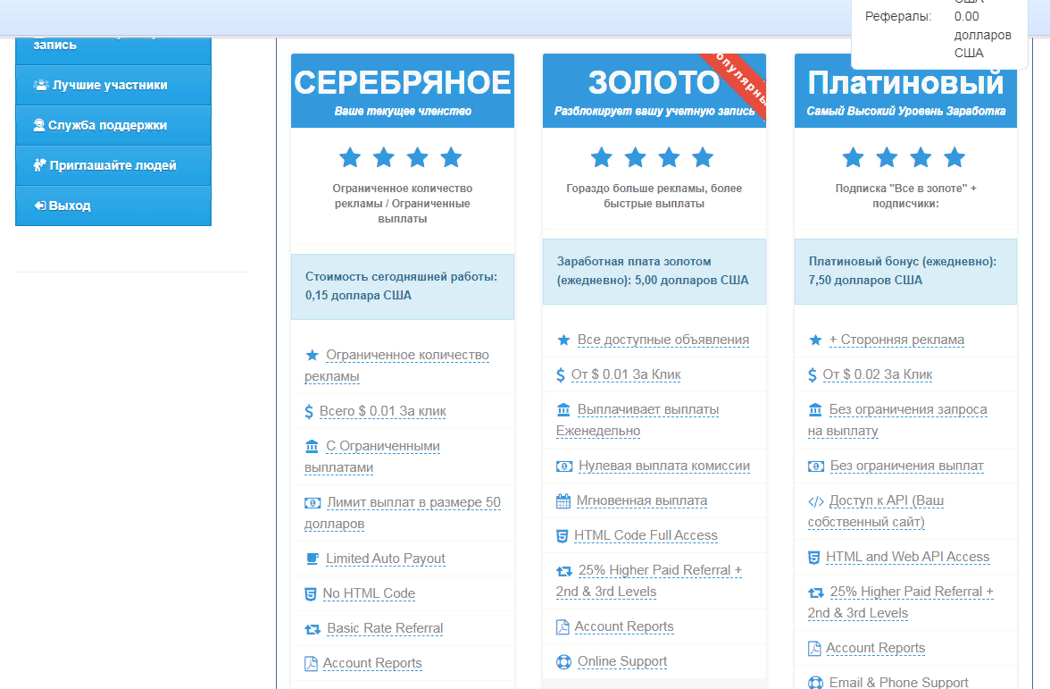 Заработок без вложений Доброго времени суток дорогой читатель.Сегодня мы поговорим о заработке без вложений. Зарабатывать мы будем на простых кликах по рекламе,на сайте дается определенное количество рекламы мы по ней кликаем,можно даже не ждать полной загрузки рекламы,а секунды через 2-3 закрывать окно и тикать следующую. И так если без вложений то в день даётся на 10-15 центов,но также там имеется такие как GOLD и PREMIUM аккаунты,где за день можно заработать от 5 до 7,5 $. Вот мой баланс Стрелочками указано место куда мы нажимаем и нам высвечиваются ссылки на рекламу по которым мы и переходим,ещё раз повторюсь полной загрузки рекламы ждать не обязательно,так что на всё про все у вас уйдет секунд 30.Деньги на баланс зачисляются сразу. А вот и сам сайт: Регистрация Ну в роди бы и всё P.S. и помним: «Богатый человек – это всего лишь бедный человек с деньгами». Уильям Филдс