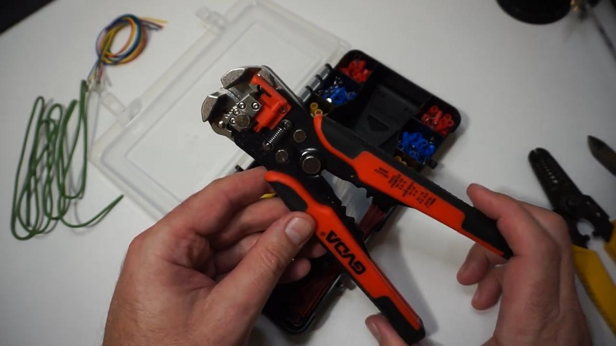 Прежде всего, он умеет зачищать провода. Вот как он это делает.