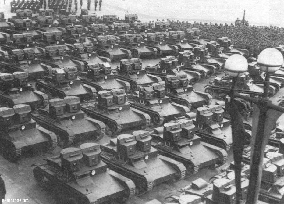 И тут, надо сказать, что не один Тухачевский был такой умный. 5 ноября 1930 г. Политбюро ЦК ВКП(б) утвердило предложения комиссии Г.К. Орджоникидзе о танкостроении, где были определены типы танков и необходимость развертывания их производства на автомобильных и тракторных заводах. А 30 ноября 1930 г., принимается решение Политбюро ЦК ВКП(б) о численности танковых вооружений. К весне 1932 г. в условиях военного времени надлежало произвести для нужд фронта не менее 4 тыс. танкеток, 13,8 тыс. малых и 2 тыс. средних танков. Цифра, конечно не равна 50 тысячам, но как минимум, сравнима с ней. И это, замечу, не проект, а вполне рабочее предложение высшего органа власти страны. Согласованное и утвержденное лично Сталиным.