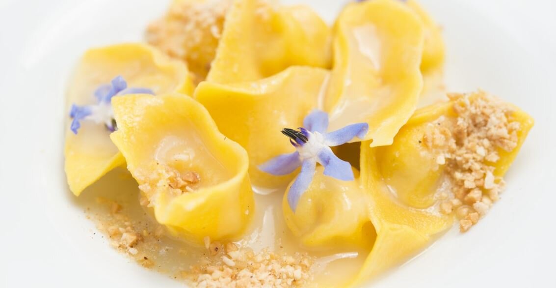 Тортелли с пармезаном, лавандой, мускатным орехом и миндалем