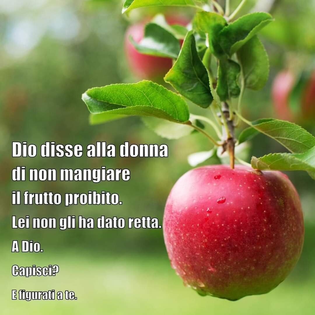 Давно не было итальянских шуток. Улыбнитесь) 1. -Бог велел женщине не есть запрещенный фрукт. Она не послушала его. БОГА! Понимаешь? А ты-то куда... 2. Минимум сил, максимальный результат) 3. "Я в момент размышления, начинать ли работать или жить за счет моей красоты?" 4. Полицейский: -Итак, права просрочены! Водитель: -Так что? Мне же их не есть! 5. -Я все ещё в тебя влюблён! -...и твоя жена? -Моя жена? Нет. Она тебя ненавидит. 6. -Так хочу твоего ребенка! -Завтра принесу, есть четверо дома.. 7. -Поздравления!!!... и где же везунчик-папа?