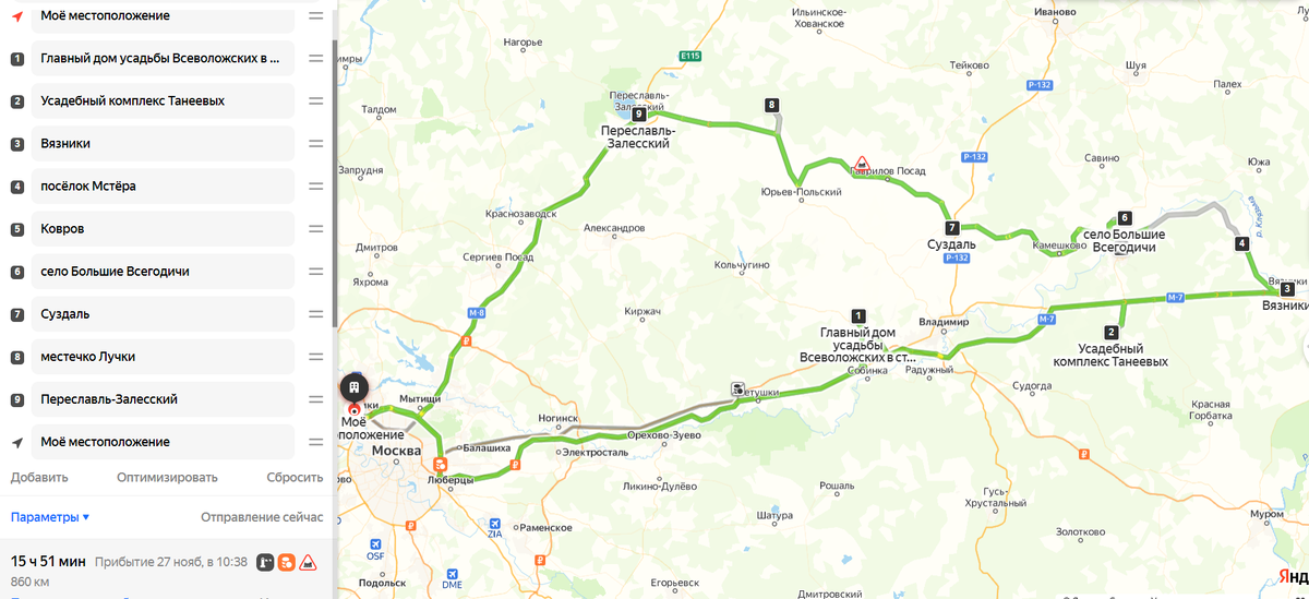 День 1: (Москва-Вязники , 400 км, на дорогу 5,5 ч+ 5 часов на погулять)