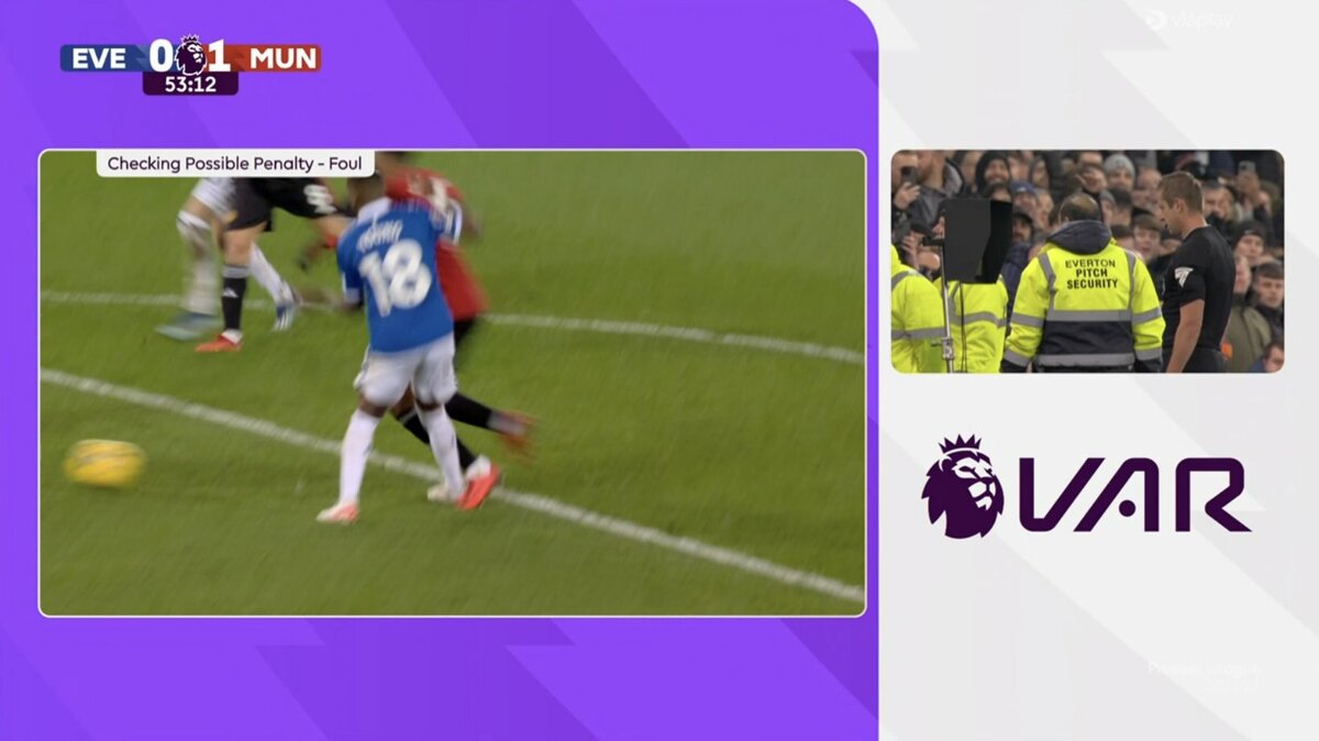 На 52-й минуте форвард «Манчестер Юнайтед» упал на краю штрафной площади, зацепив ногу Эшли Янга. Главный судья Джон Брукс показал французу желтую карточку за симуляцию. После консультации с видеоассистентом и просмотра видеоповтора рефери изменил свое решение. Он отменил предупреждение и назначил пенальти в ворота «Эвертона». Маркус Рэшфорд успешно его реализовал – 2:0. Изображение: кадр из трансляции Viaplay «Эвертон» – «Манчестер Юнайтед». 0:2 – Гарначо забил ударом через себя, Рэшфорд – с пенальти. Онлайн-трансляция Игра про деньги в футболе: норм ли отдать 100 млн за Холанда? А за Беллингема?