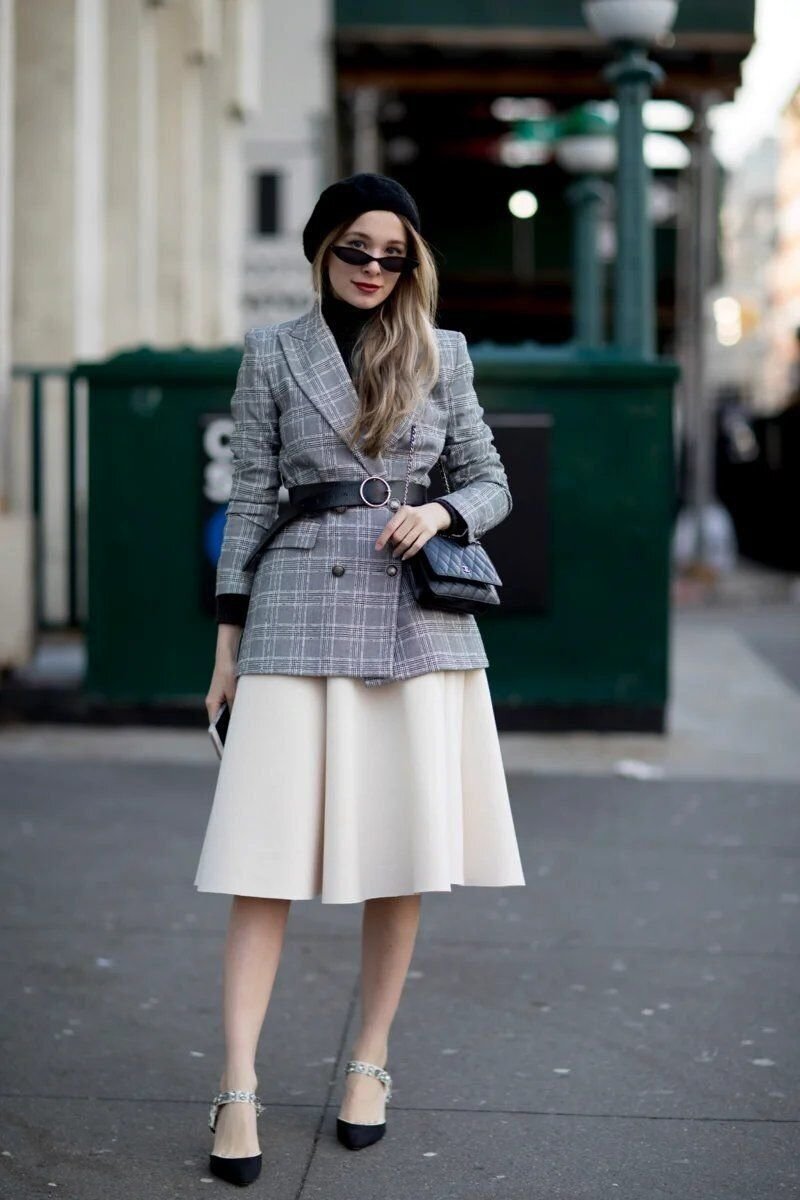 Образы подобного рода можно надевать и в офис, и в кафе, и на встречу с друзьями. В них чудесным образом переплетается формальность делового пиджака и легкость очень женственных платьев и юбок. Как говорится, и в пир, и в мир, и в космос полететь.