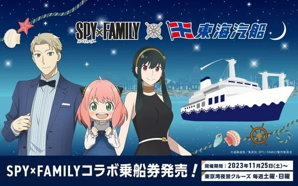 А как вам такое: желающие могут отправиться в круиз по мотивам «Семьи шпиона»! Во втором сезоне Форджеры в полном составе отправились в морской круиз на шикарном лайнере. Круизная компания Tokai Kisen решила пойти на коллаборацию с брендом и запустила тематический корабль Salvia Maru, который в честь события оформили в точности как в аниме.