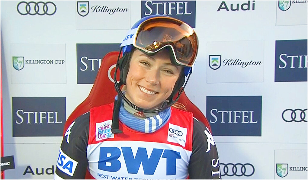 И уверенно привозит Петре 33 сотых! Микаэла одерживает очередную, 90-ю победу в карьере и выигрывает 55-й слалом. Петра Влхова в пятый раз вторая на американкой трассе, а Микаэла в шестой раз выигрывает гонку в Киллингтоне. Венди Холденер – впервые в этом сезоне на пьедестале, третья, Лена Дюрр – четвертая. А Марта Россетти впервые в карьере поднимается на пятое место, и это с 32-м стартовым номером. Мишель Гизин прерывает неудачную серию, она шестая, Андрея Слокар впервые после возвращения – на седьмом месте.