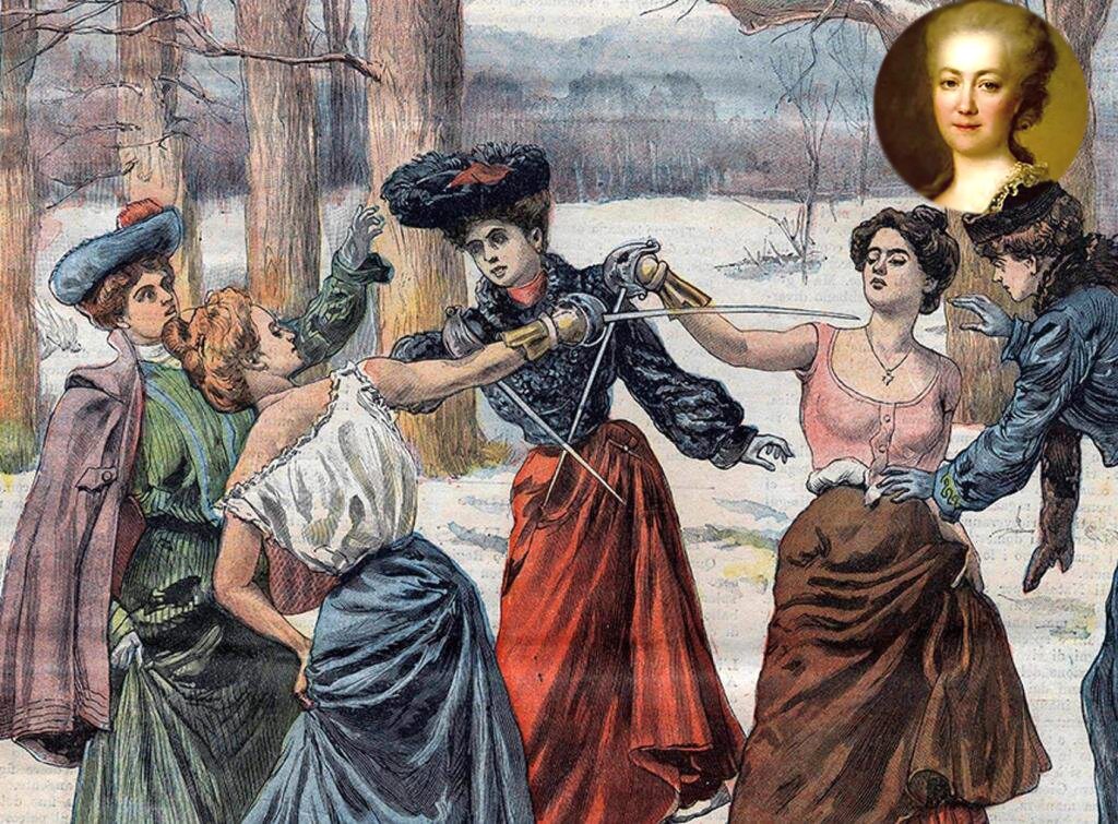 «Я ненавижу дуэли. На мой взгляд, в них нет ничего рыцарского». Характеристика принадлежит человеку, который никогда не праздновал труса. Совсем даже наоборот — личная отвага российского императора Николая Первого вызывала восхищение повсеместно. Так, может быть, в подобной оценке поединков кроется здравый смысл? Тем более что именно в царствование Николая Первого произошли две смертельные дуэли, осиротившие Россию гибелью гениев: Пушкина и Лермонтова. И всё-таки русский человек отнюдь не чурался дуэли. К барьеру вставали порой весьма неожиданные персонажи. К примеру — дамы. Оплеуха по-русски Имею честь познакомить читателя с великолепной Екатериной Романовной Воронцовой-Дашковой. Директор Петербургской Академии наук, президент Российской академии, княгиня, образованнейшая женщина своего времени, знакомством с которой гордились Руссо, Вольтер, Дидро, Адам Смит, другие знаменитости той блестящей эпохи. Выдающаяся учёность уживалась в ней с пребойким характером. В России она стала одной