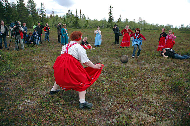 Бутсы и саамский футбол – вещи несовместимые. Зато сарафаны – пожалуйста. По правилам этой игры женщины должны играть командами пять на пять, и обязательно в сарафанах. Ну или на худой конец – в длинных юбках.