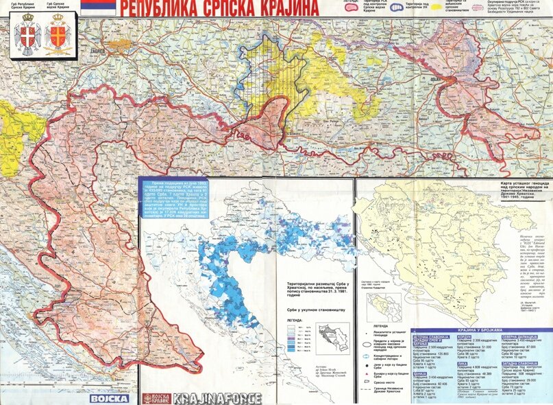И самое главное — огромная разница в демографическом потенциале. Население РСК в середине 1993 года составляло около 435 000 человек. Ряду исследователей эта цифра кажется завышенной. Мы считаем ее достоверной, так как она стала результатом переписи, проведенной краинским Министерством обороны. Военные на местах очень хорошо знали и численность своих войск, и численность мужчин вообще. А практически каждый взрослый мужчина в Краине был на службе или в армии, или в Милиции (об этом подробнее ниже). Значительный процент населения в РСК составляли сербы-беженцы с собственно хорватских территорий. Их были десятки тысяч и они существенно увеличили численность жителей в ряде городов и сел Краины.