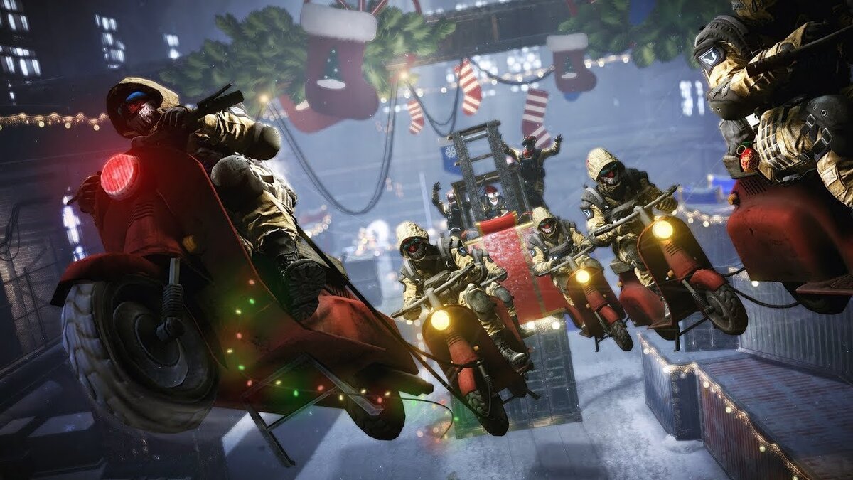 До Нового Года осталось около месяца, а разрабы до сих пор не убрали из игры Хэллоуинский ивент. До конца месяца выполняйте тематические задания и получайте донат, экипировку и внешность на время и навсегда – они помогут вам в новогоднем ивенте. Что ждёт игроков в декабре В преддверии праздника разрабы по дефолту добавят награды навсегда – в этот раз за ежедневный вход вы получите бесплатные внешности из олдовых наборов: Чёрная Вдова, Горгона, Униформа РФ и другие. Если вы планировали купить их за кредиты, советуем повременить и выбить их бесплатно. В новогоднем обновлении появится новый PvP режим “Захват флага”, похожий на “Доминацию”, но где доступны только новогодние карты. А ещё разрабы переделали локацию “Трейлерный парк” под тематику праздника и увеличат дроп монет чёрного рынка для нового режима. Промо-страницы и новые пушки Игроки заметили в файлах игры упоминание новогодних раздач скинов и снаряжения: В декабре появится новая штурмовая винтовка STK CMCR, по характеристикам схо